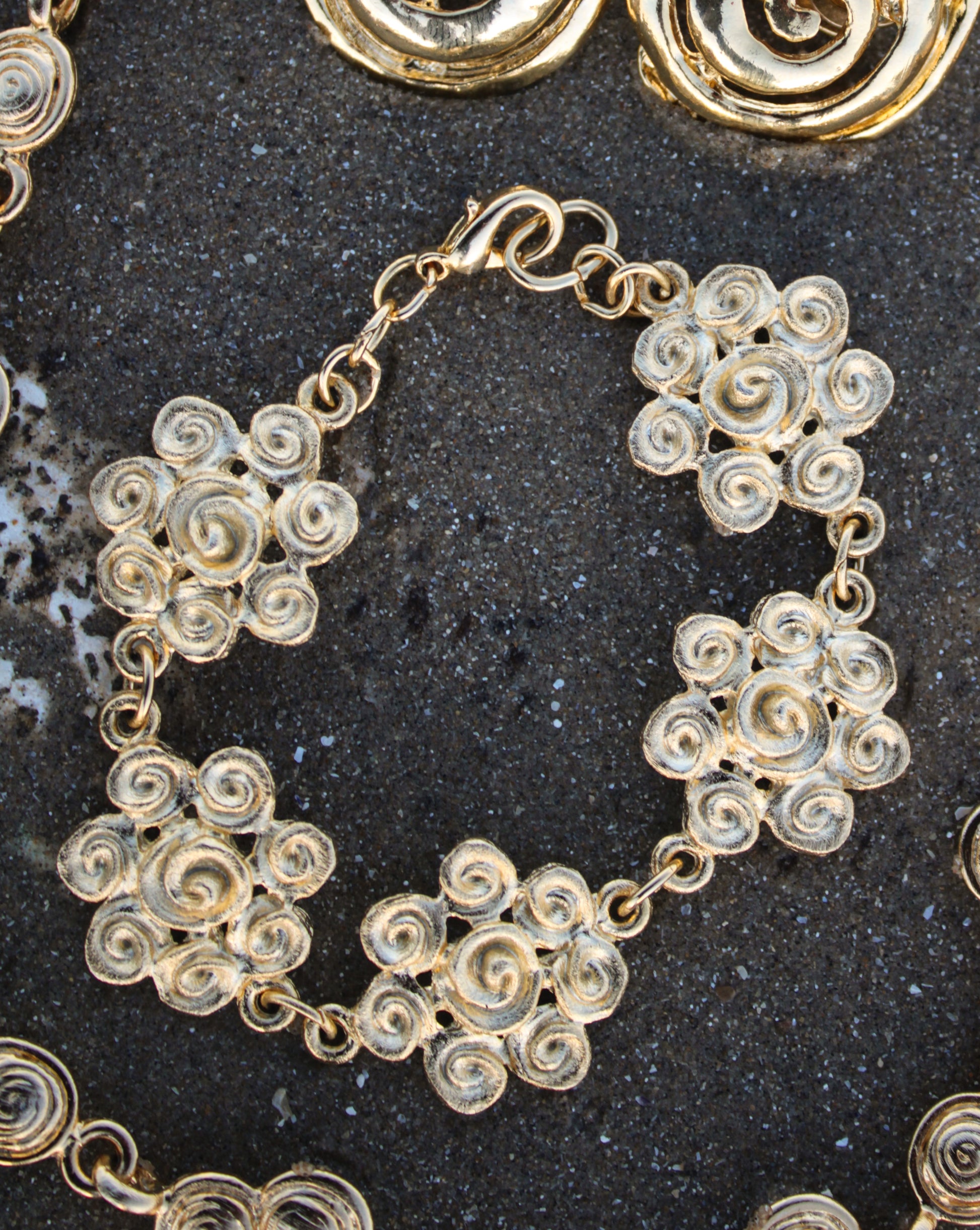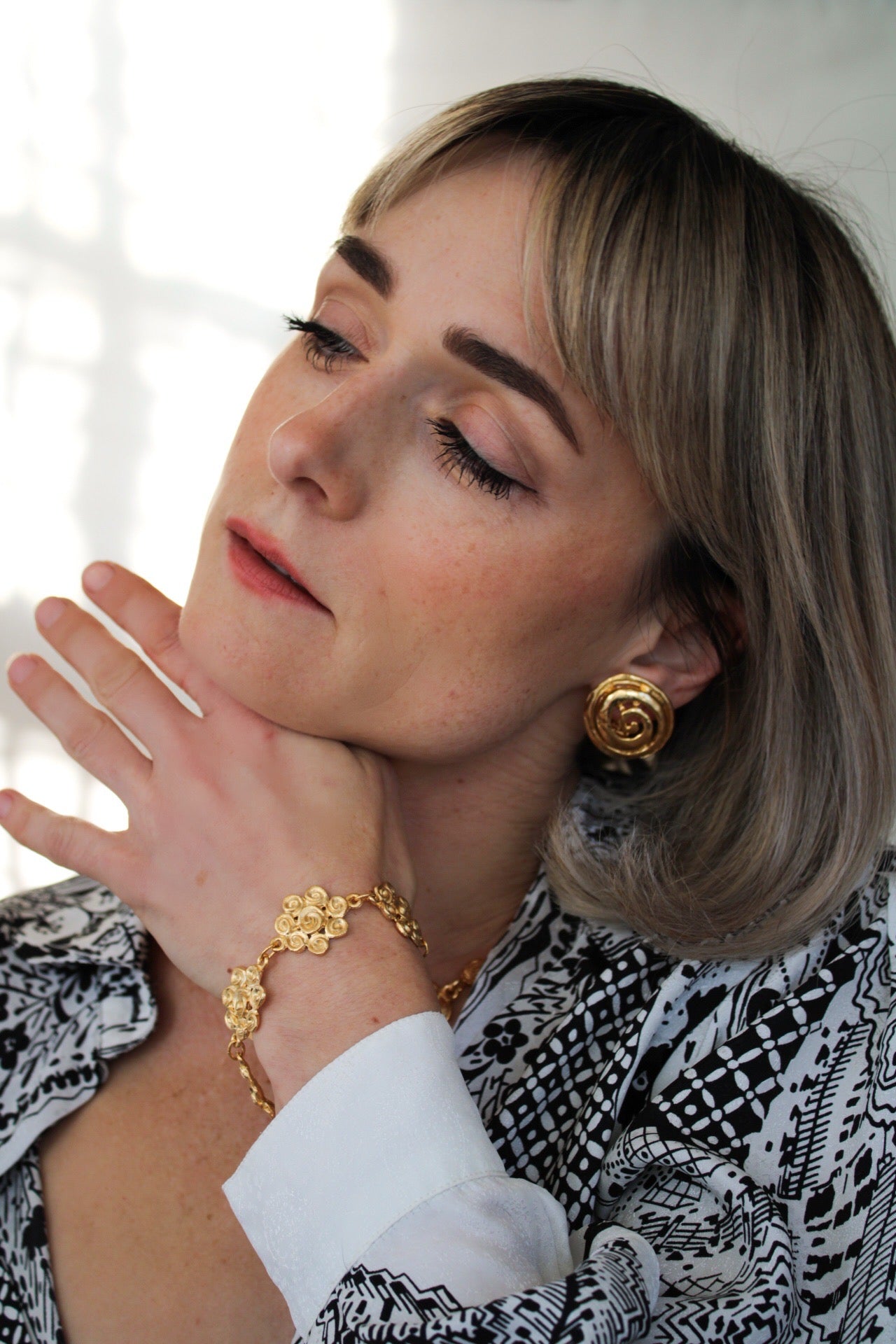 Gorgeous 90's dead stock bracelet with daisy swirl detail, clasp fastening. Gold Plated.