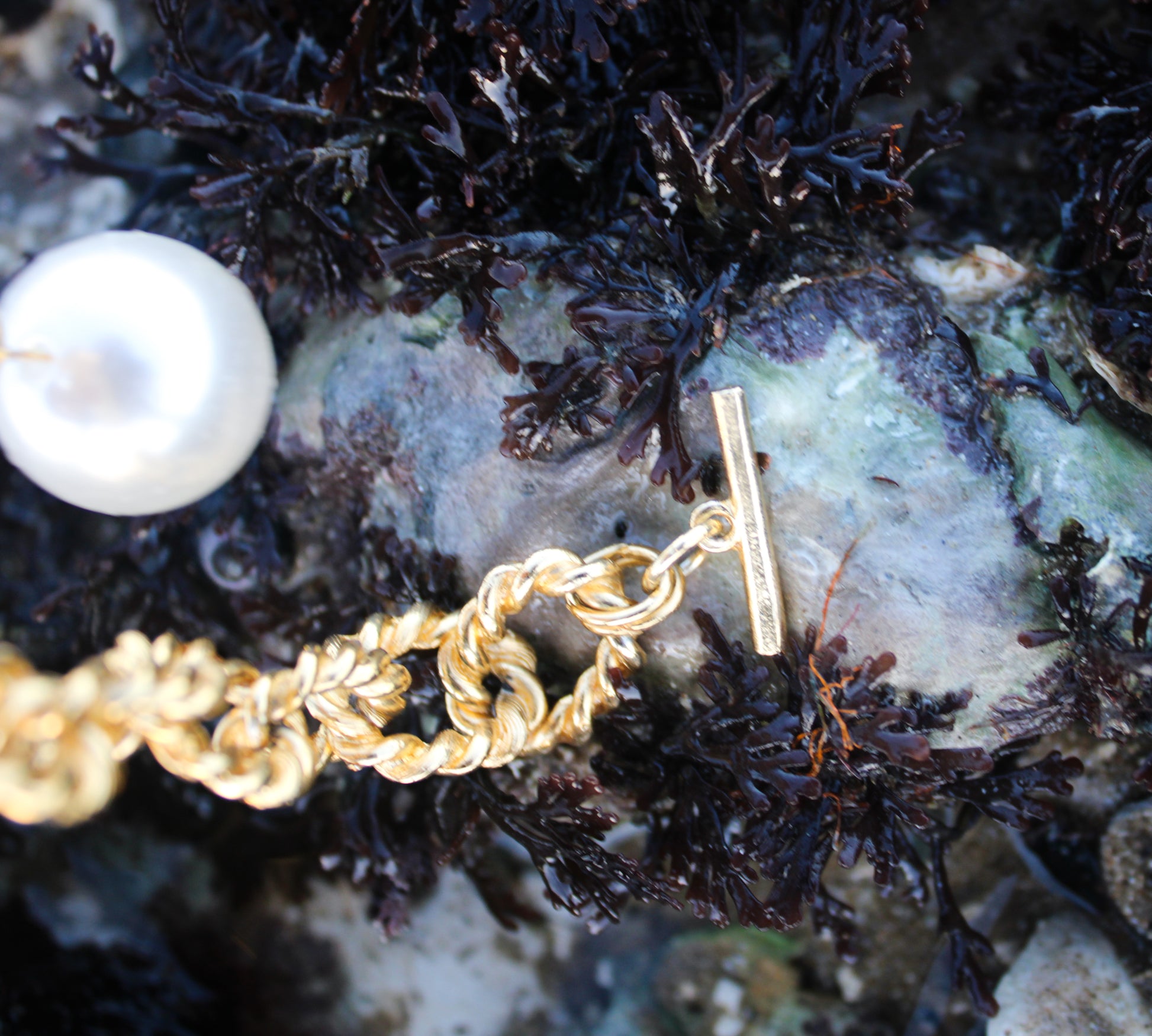 Dimensions ~ chain length 18.5cm, chain width 1.5cm, faux pearl width 2.5cm