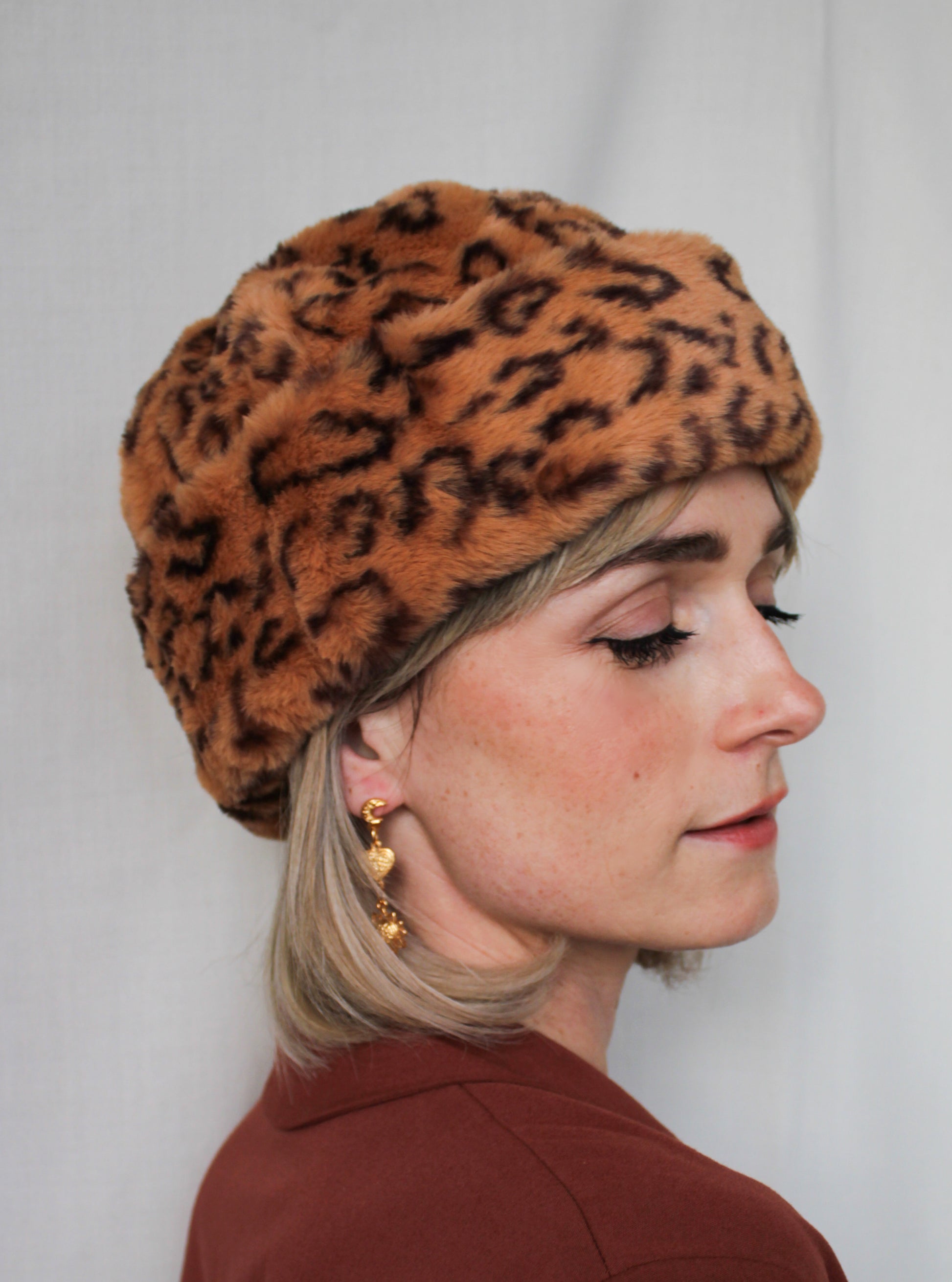 Tan Leopard Print Faux Fur Perschy Hat